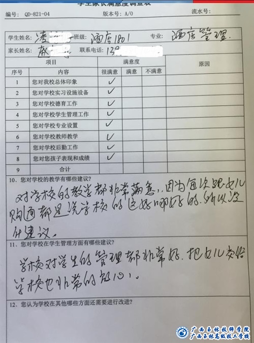 最后,给家长代表们发放《问卷调查表》,收集对学院教育教学和学生管理方面的建议和认为需要改进的问题。