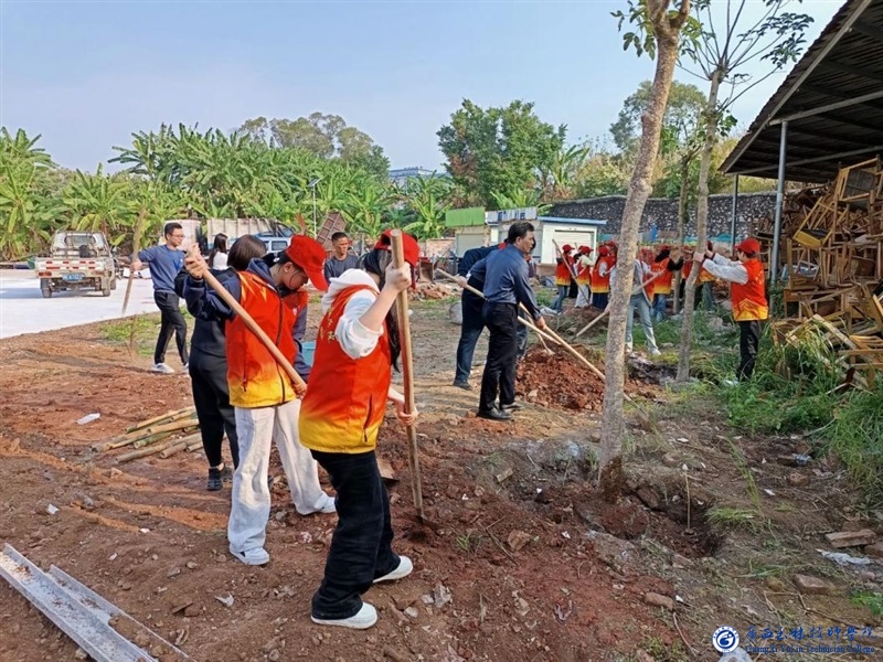 2025年3月植树节期间,学院举办了以“绿动未来,共植希望”为主题校内植树活动。活动期间由党委书记辛相宁、院长张帆和副院长黄庆燕共同带领20多名志愿者在校园一角植下五棵秋枫树。