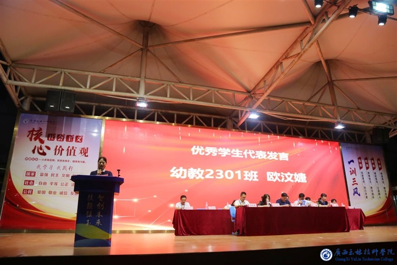 随后,优秀学生代表、多次获学院奖学金的幼教2301班的欧汶婕同学发言。她表达了对学院培养与老师指导的感恩之情,并号召全体同学以先进为榜样,在接下来的学习中勇攀高峰。