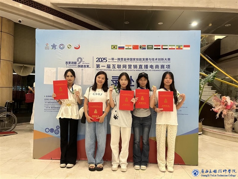 广西玉林技师学院代表队斩获2025一带一路暨金砖国家首届互联网营销直播电商国赛银牌