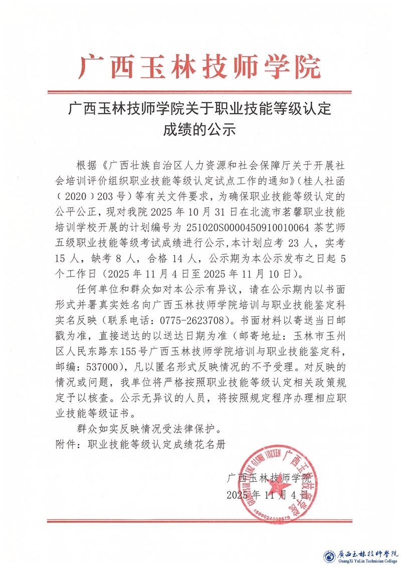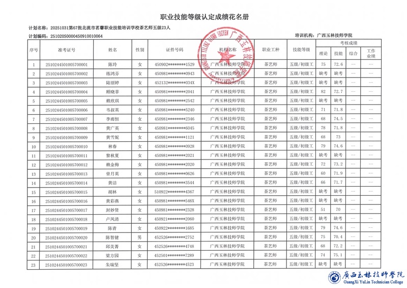 职业技能等级认定成绩公示(计划编号251020S0000450910010064)