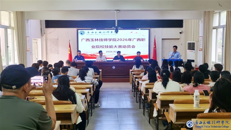 2月28日,我院召开2026年广西职业院校技能大赛动员大会。会议由教务科科长甘梓坚主持,学院领导辛相宁、张帆、陈静,各系部领导,指导老师及全体参赛选手参加会议。