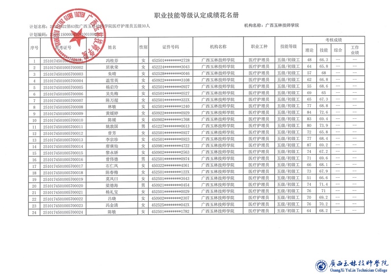 职业技能等级认定成绩公示(计划编号:251011S0000450910010060)