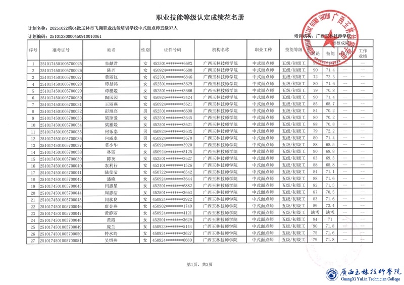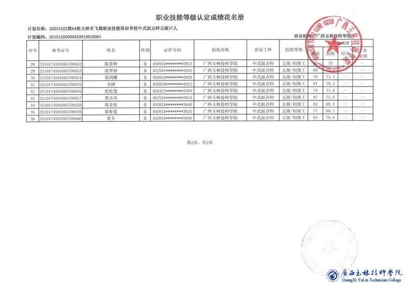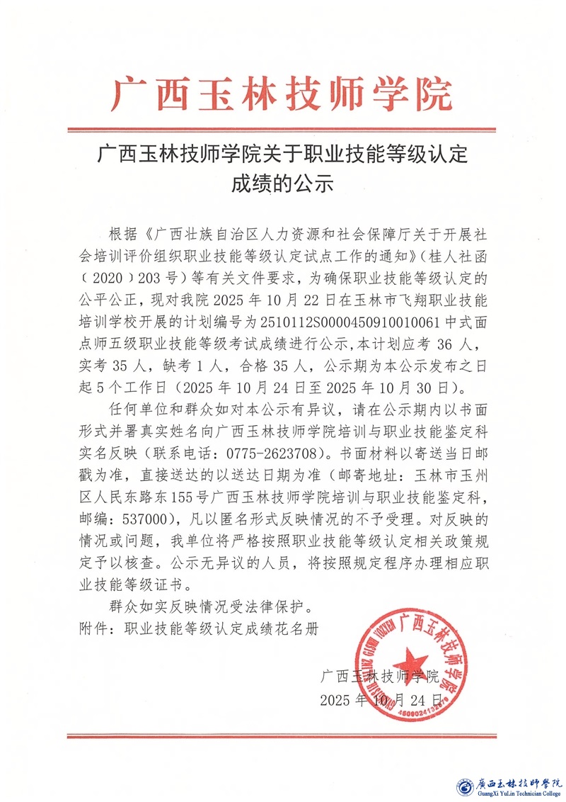 职业技能等级认定成绩公示(计划编号:2510112AS0000450910010061)