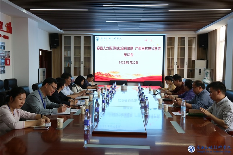 2026年3月20日,容县人力资源和社会保障局副局长黄春梅一行莅临我院,就深化校地合作、共促高质量发展开展调研交流。学院院长张帆,副院长黄庆燕、陈静及相关部门负责人陪同调研并出席座谈会。