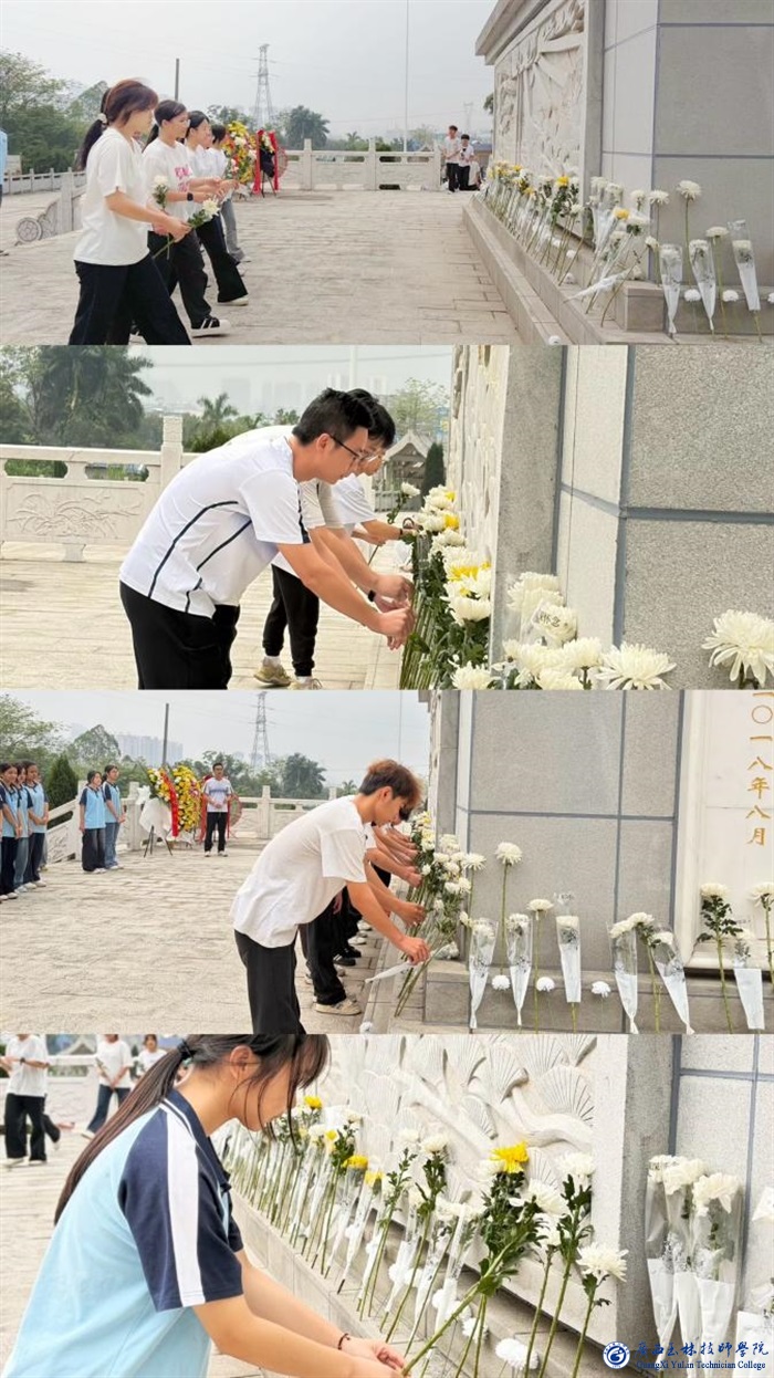 清明寄哀思,鲜花祭英魂。广西玉林技师学院师生代表怀着崇敬之心,依次向革命烈士纪念碑敬献白菊,以一束素花寄无限追思,用最庄重的仪式缅怀先烈、致敬英雄,传承红色血脉,赓续精神丰碑。